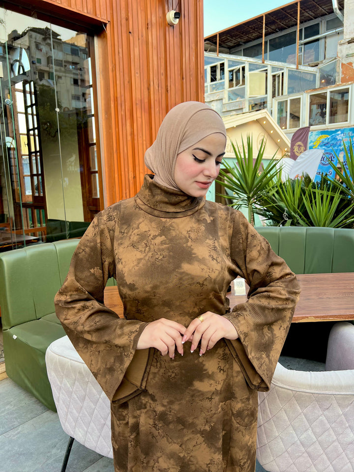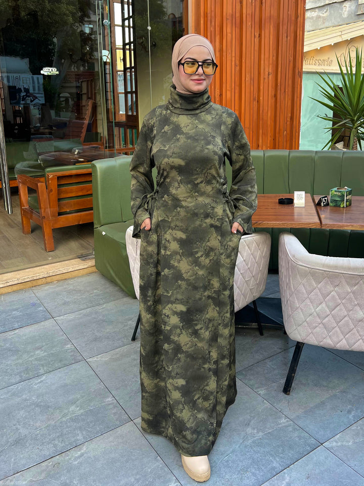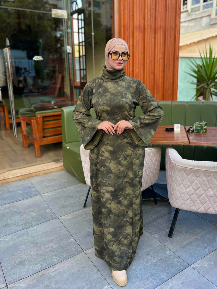 Upgrade your modest wardrobe with this Olive Modest Maxi Dress for Women, designed for comfort, elegance, and everyday style. This long-sleeve maxi dress features a high neckline, flared bell sleeves, and a unique olive-patterned fabric, making it the perfect choice for hijabi women who love modern, modest fashion.