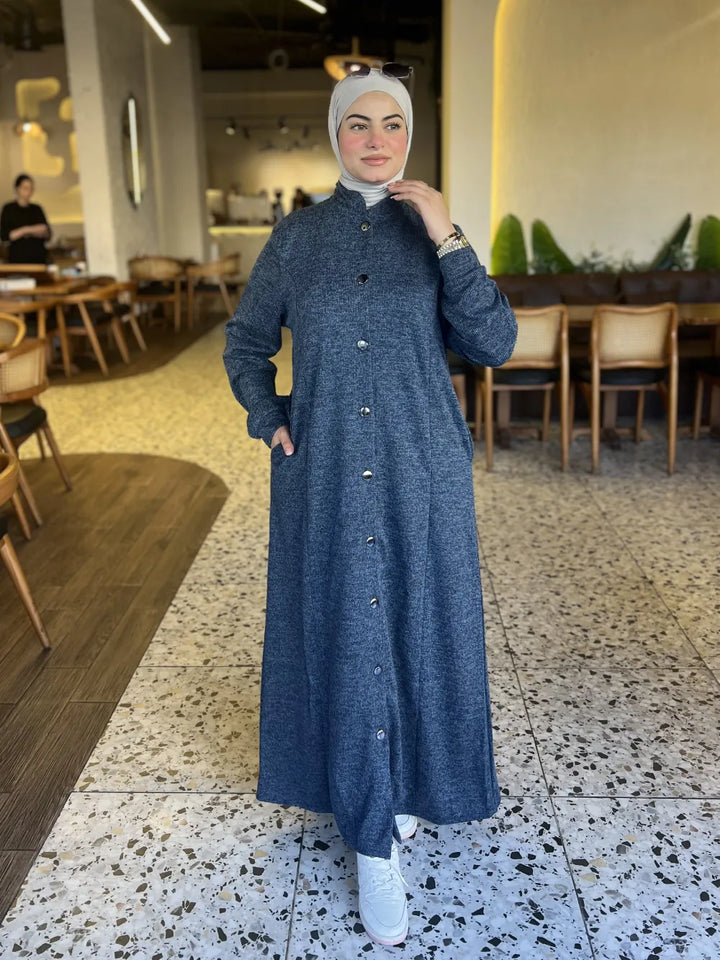 Discover elegance and warmth with our new winter collection from Samra Store. The Nagham Dress is crafted from high-quality lever polar fabric, offering a soft, comfortable feel perfect for cold weather. Designed to suit every body shape, this cozy winter dress combines comfort, warmth, and effortless style — making it a must-have piece for your winter wardrobe.